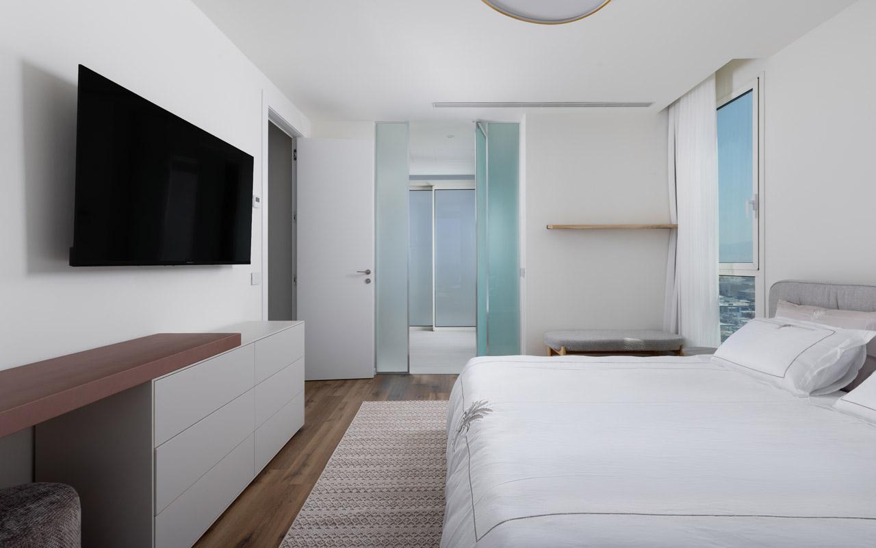 עיצוב שמדגיש חוויית אירוח רגועה ומוקפדת, שילוב מדויק של חומרים, פרופורציות ופרטים היוצרת תחושת איכות.