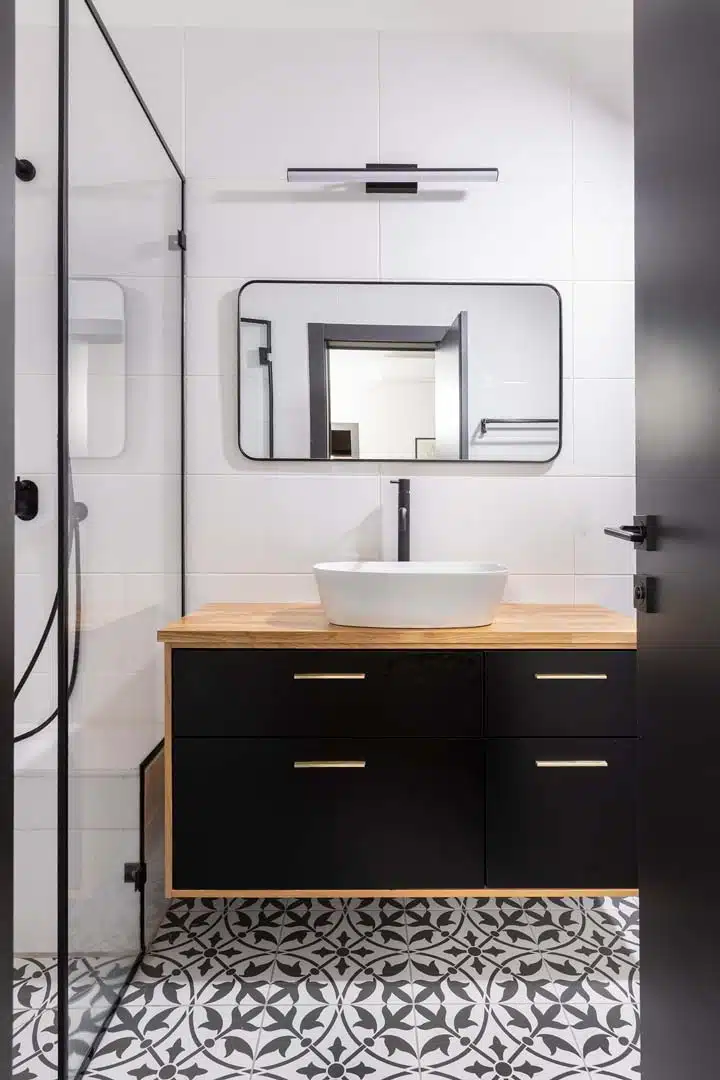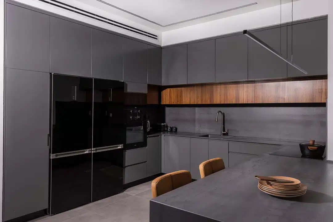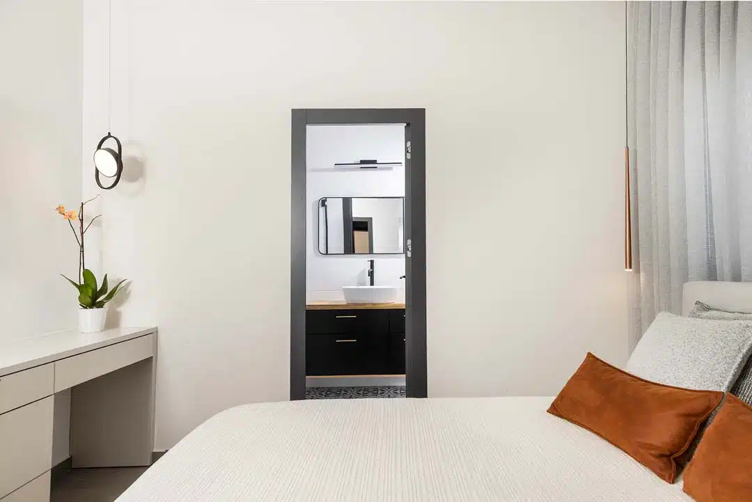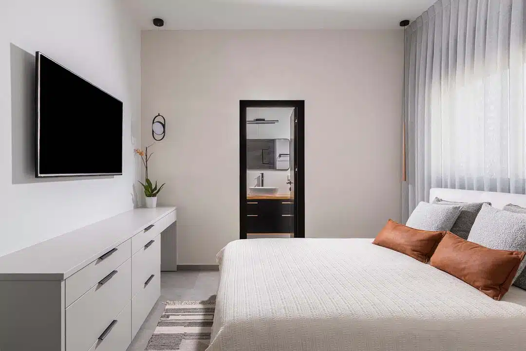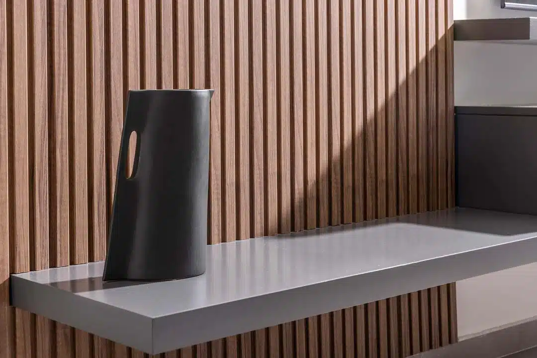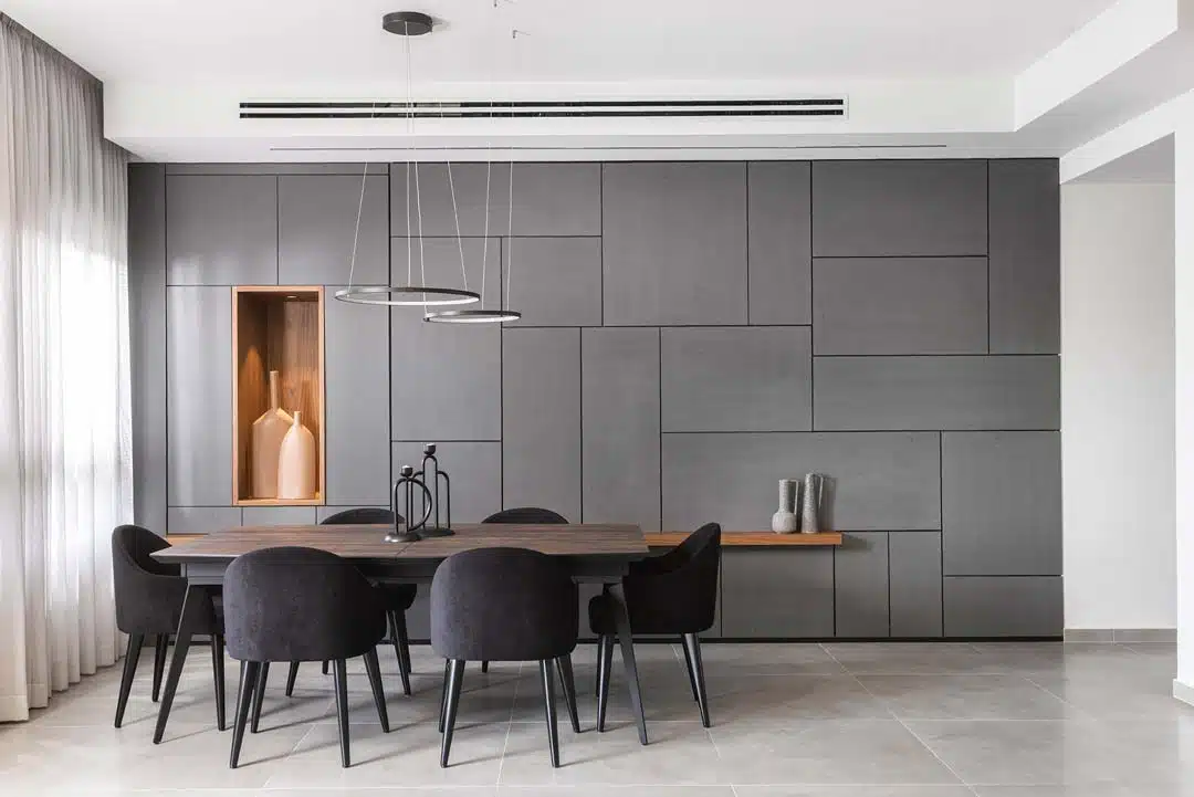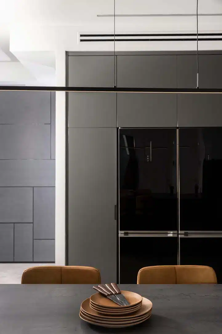 מאחורי לוחות פולימר שנראות כחיפוי קיר בלבד מסתתר ארון גדול המשמש לאחסון.
